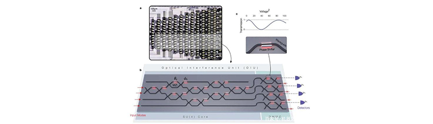 該處理器使用一個(gè)波導(dǎo)陣列,可以根據(jù)需要修改相互連接的方式,為特定的計(jì)算編寫一組波束。在應(yīng)用中,它可以以典型的人工智能算法執(zhí)行計(jì)算,但速度要比在傳統(tǒng)硅芯片上快得多。