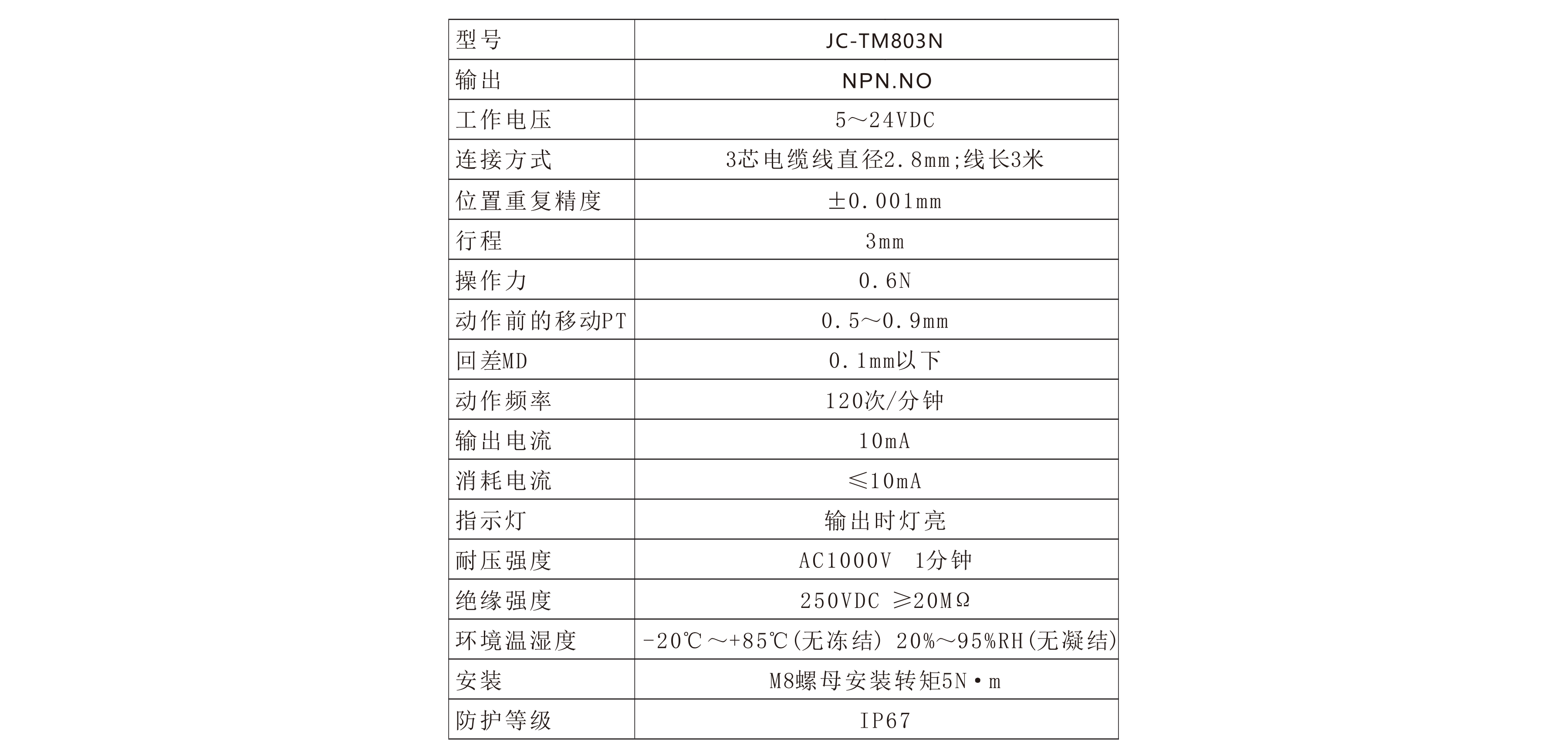 這是Jiance的接觸式傳感器,整體外觀是M8螺紋,螺距M等于0.75mm,金屬結(jié)構(gòu),防護(hù)等級(jí)IP67,防塵防水。