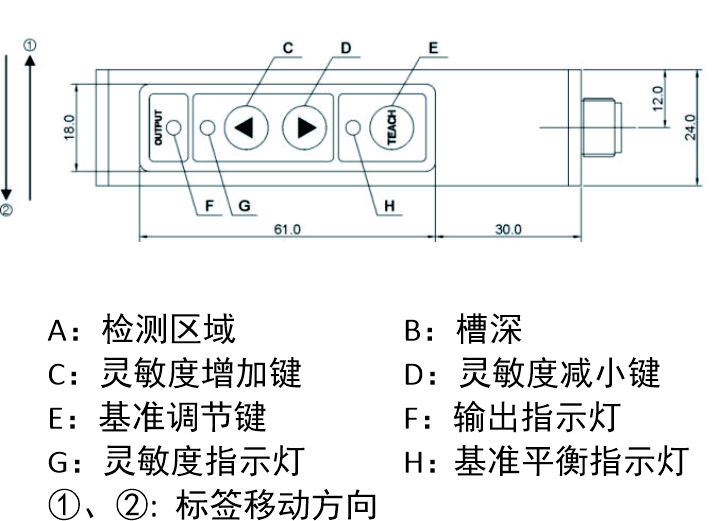 電容標(biāo)簽傳感器JC-C100抗干擾能力強(qiáng),對(duì)于光電和超聲波檢測有絕對(duì)優(yōu)勢,配備VS反極性保護(hù),輸出短路保護(hù),干擾抑制,亮通暗通可自由選擇,NPN、PNP 一體。