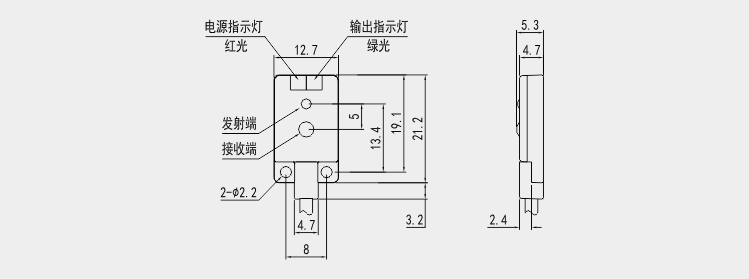Jiance 超薄光電開關(guān)JC-04系列機身厚度只有3.6毫米,非常小巧,可以應(yīng)用在狹窄的空間內(nèi)進行檢測,節(jié)省安裝空間。機身上另有一個發(fā)光孔和收光孔,從上面發(fā)出可見光進行檢測。