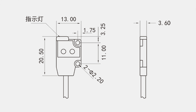 JC-04D系列 是漫反射的光電開關(guān),機身上帶發(fā)光孔和收光孔,發(fā)出可見紅光進行檢測。機身上有紅色電源指示燈和綠色輸出指示燈,指示燈明亮易觀察。同時帶兩個M2的螺絲孔用于固定安裝。