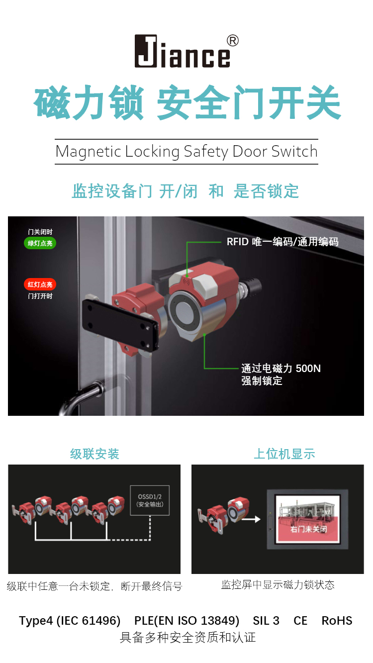 Jiance 磁力鎖 安全門開(kāi)關(guān) 具有多種安全資質(zhì)和認(rèn)證