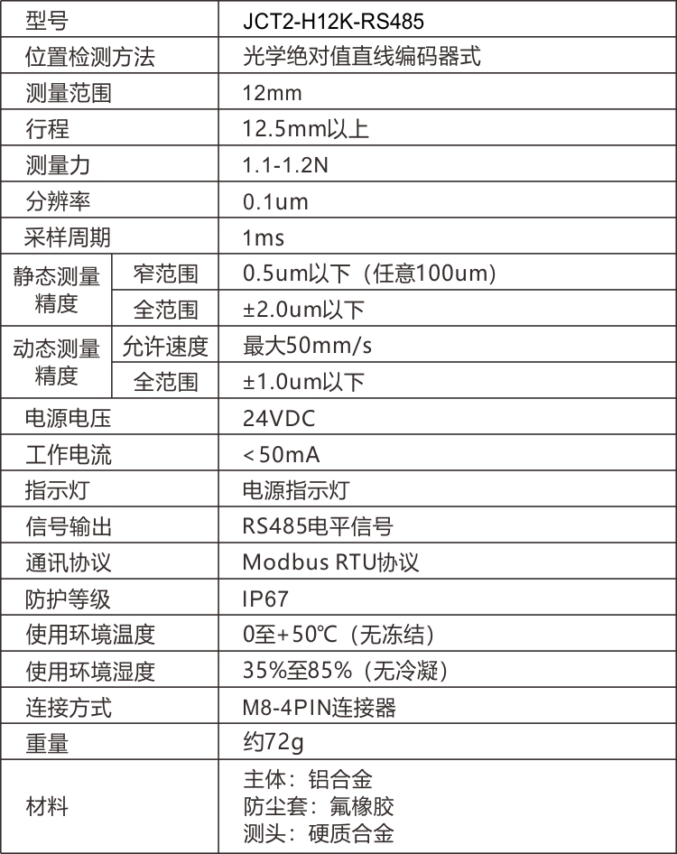 Jiance 高精度接觸位移傳感器系列JCT2 系列 支持動態(tài)測量