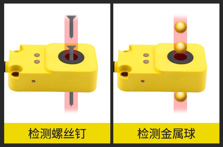 JIANCE環(huán)型接近開關(guān)的感應(yīng)區(qū)呈環(huán)型狀,對(duì)通過(guò)其中的金屬物體進(jìn)行感應(yīng),多數(shù)情況下配合塑料管道使用,管道可以限制被檢測(cè)物的運(yùn)動(dòng)路徑,讓其必定從環(huán)型接近的感應(yīng)區(qū)通過(guò),從而精確檢測(cè)。