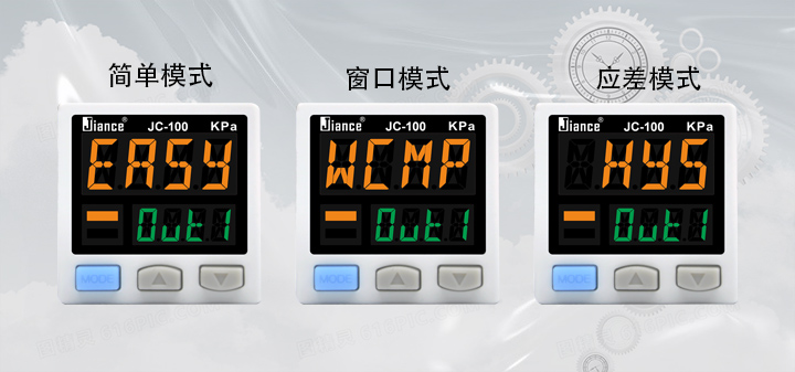 Jiance 數(shù)顯壓力開關(guān) JC-100系列 有三種信號輸出模式,分別的簡單模式、窗口模式、應(yīng)差模式。