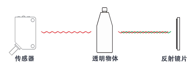 帶偏光片鏡片反射型光電開關(guān)通過發(fā)射過濾光,經(jīng)過透明物體后,光的波形被打亂,傳感器的接收區(qū)就接收不到原波形的光,從而感應(yīng)透明物體,輸出信號(hào)。