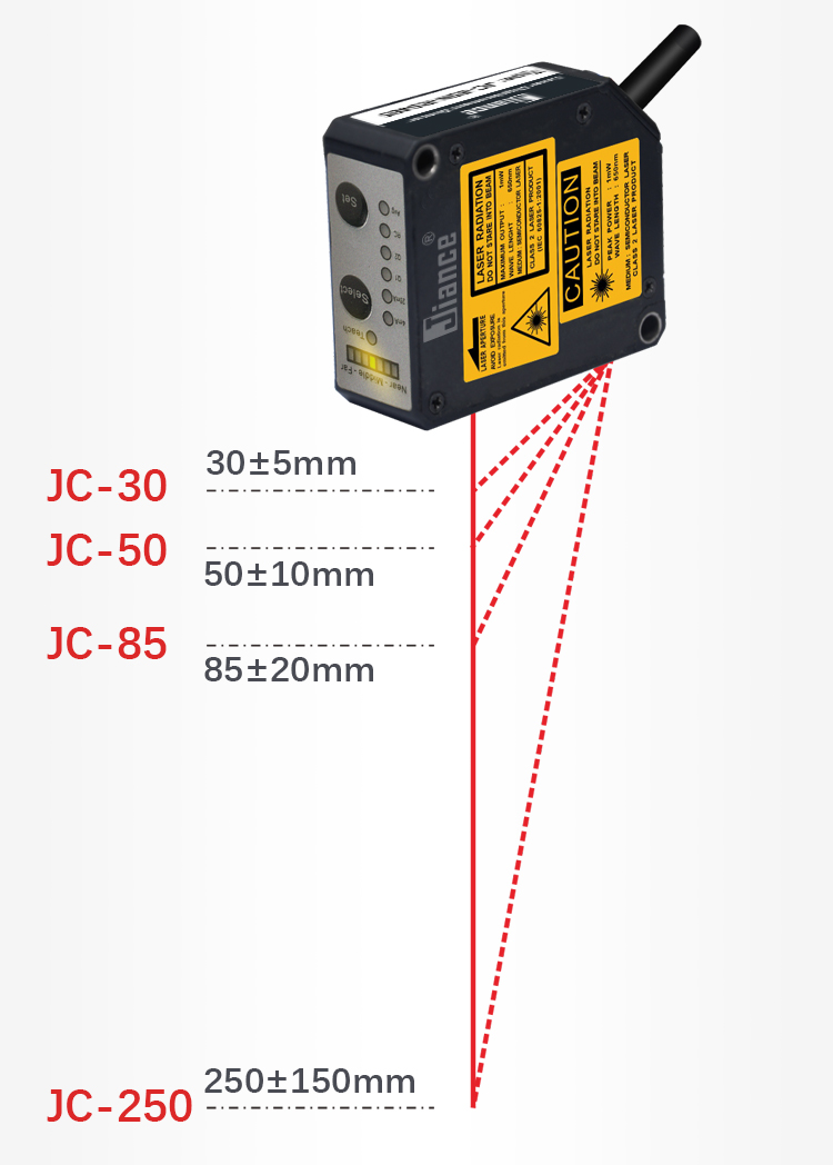 Jiance 激光位移傳感器 JC系列有四種不同的量程可以選擇,JC-30量程25~35毫米,JC-50量程40~60毫米,JC-80量程65~105毫米,JC-250量程200~400毫米,最高重復(fù)精度可達(dá)0.0005毫米。