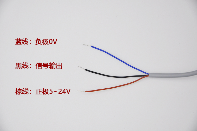 第二個要點是接線,拿到產(chǎn)品后需要先看清楚接線,棕色正極5~24VDC直流電,藍色負極0V,黑色是信號輸出線。正負極不要反接,黑色信號線也不要接到正負極。