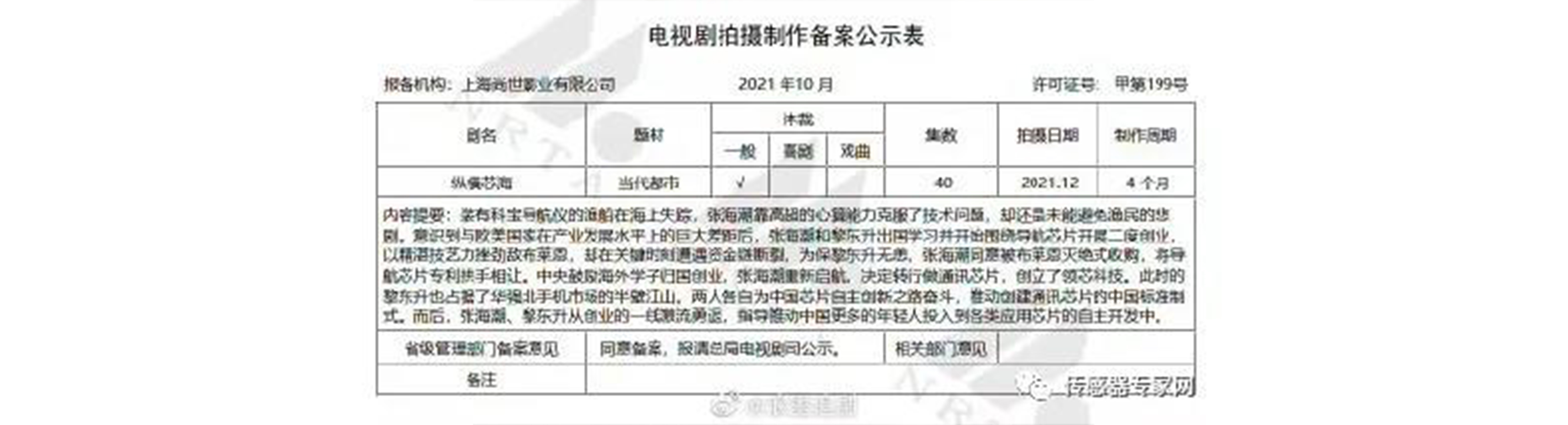近日,中國首部以芯片為題材的傳感器&半導(dǎo)體行業(yè)電視劇《縱橫芯海》順利通過備案,將于2022年4月在上海開機拍攝,你期待這部電視劇上映嗎?