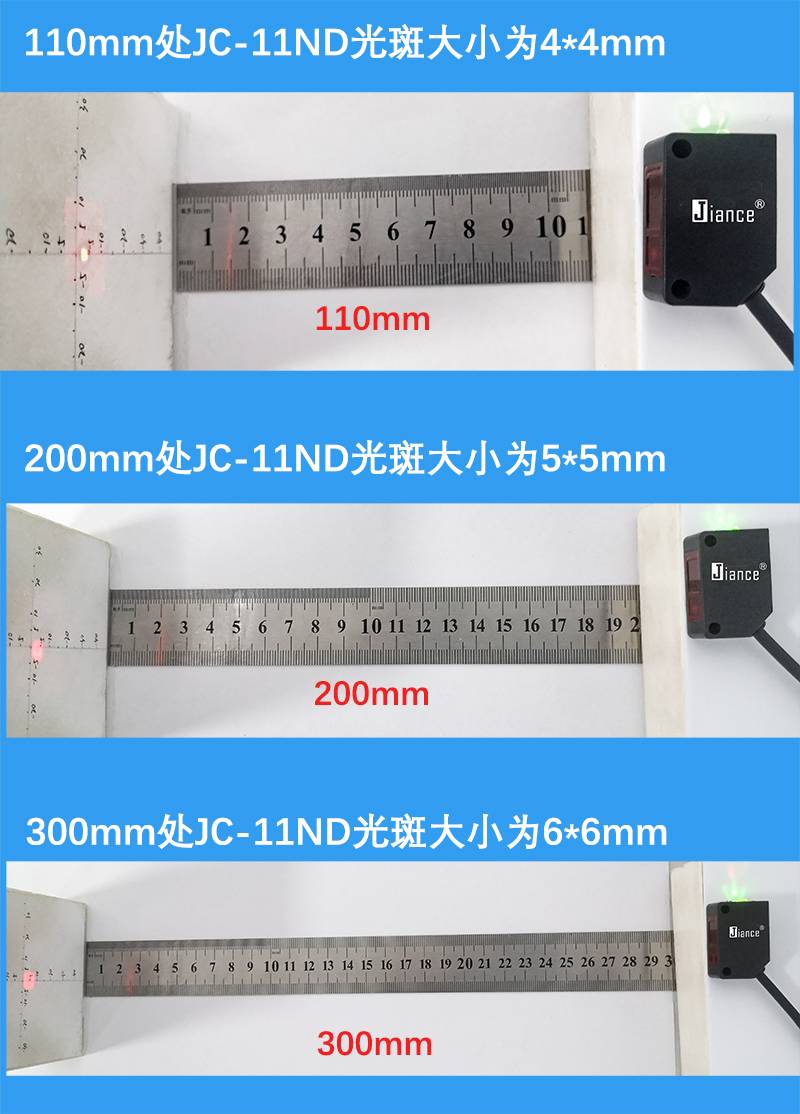 光斑小,檢測(cè)距離在20mm-300mm之內(nèi)可隨意調(diào)節(jié)。