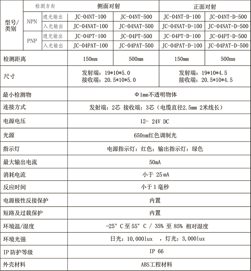 Jiance超薄對(duì)射光電開關(guān)JC-04T