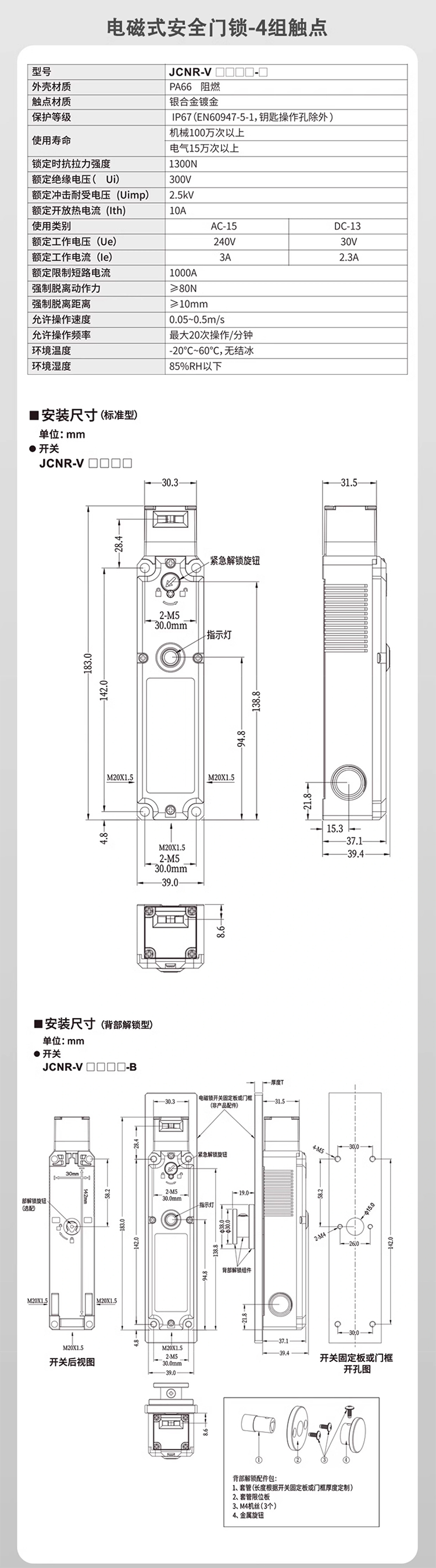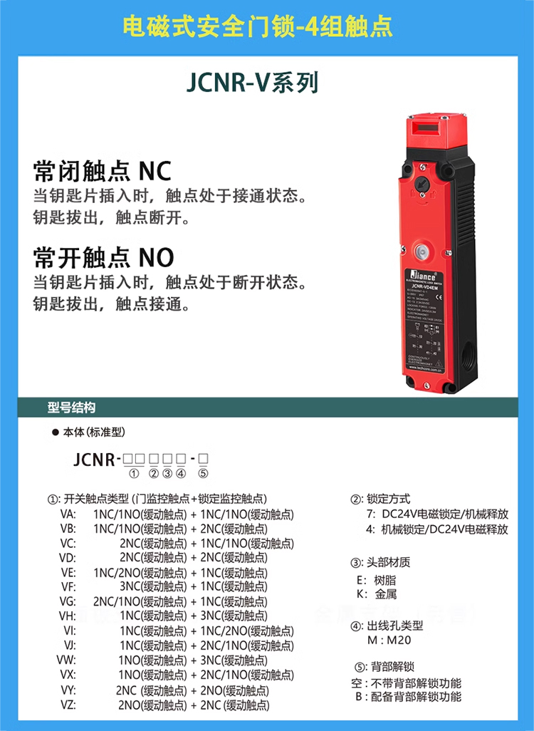JIANCE 電磁式安全門鎖 四組觸點(diǎn) JCNR-V系列