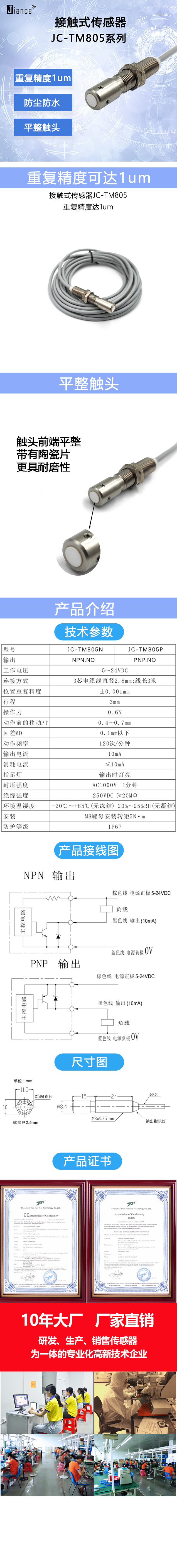 JIANCE 接觸式傳感器JC-TM805